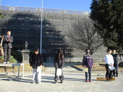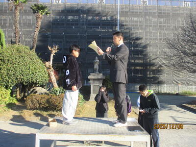 校長先生のお話の後は「税を考える週間書道展」の受賞者達を表彰しました。
