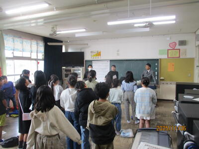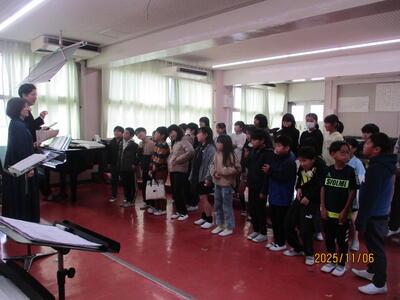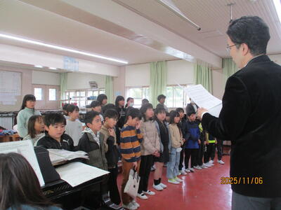 芸術家派遣授業 投稿: 副校長 (11/07) 音楽会へ向けた合唱指導にオペラ歌手や指揮者、ミュージカルで活躍されている「オペラアーツ振興財団」の方々にきて頂きました。文化庁の芸術家派遣事業の取り組みで、今回で2回目の来校です。4・5・6年生が、一生懸命に歌を歌い、音楽室では素敵な歌声が響いていました。 上手く歌う3ポイント(リズム・ピッチ・ロングトーン)などを教えてもらいました。あと3週間で本番の音楽会に向けて頑張っています! Tweet -